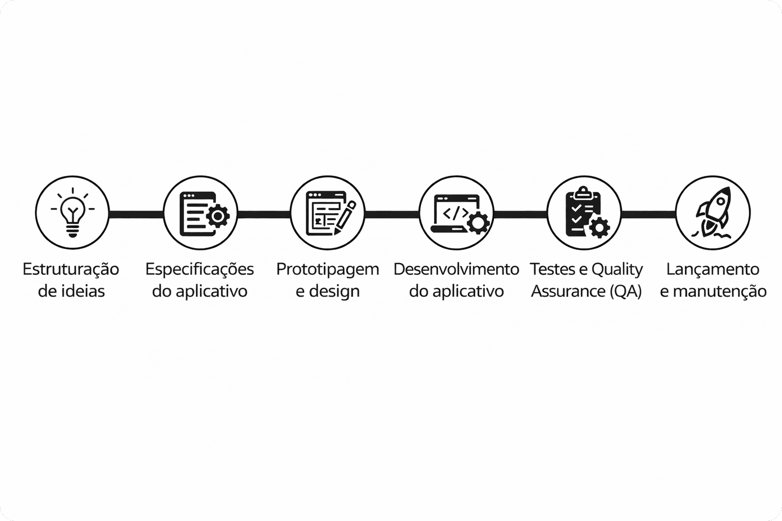 Embora cada projeto tenha suas particularidades, o desenvolvimento de aplicativos geralmente passa por algumas fases fundamentais.