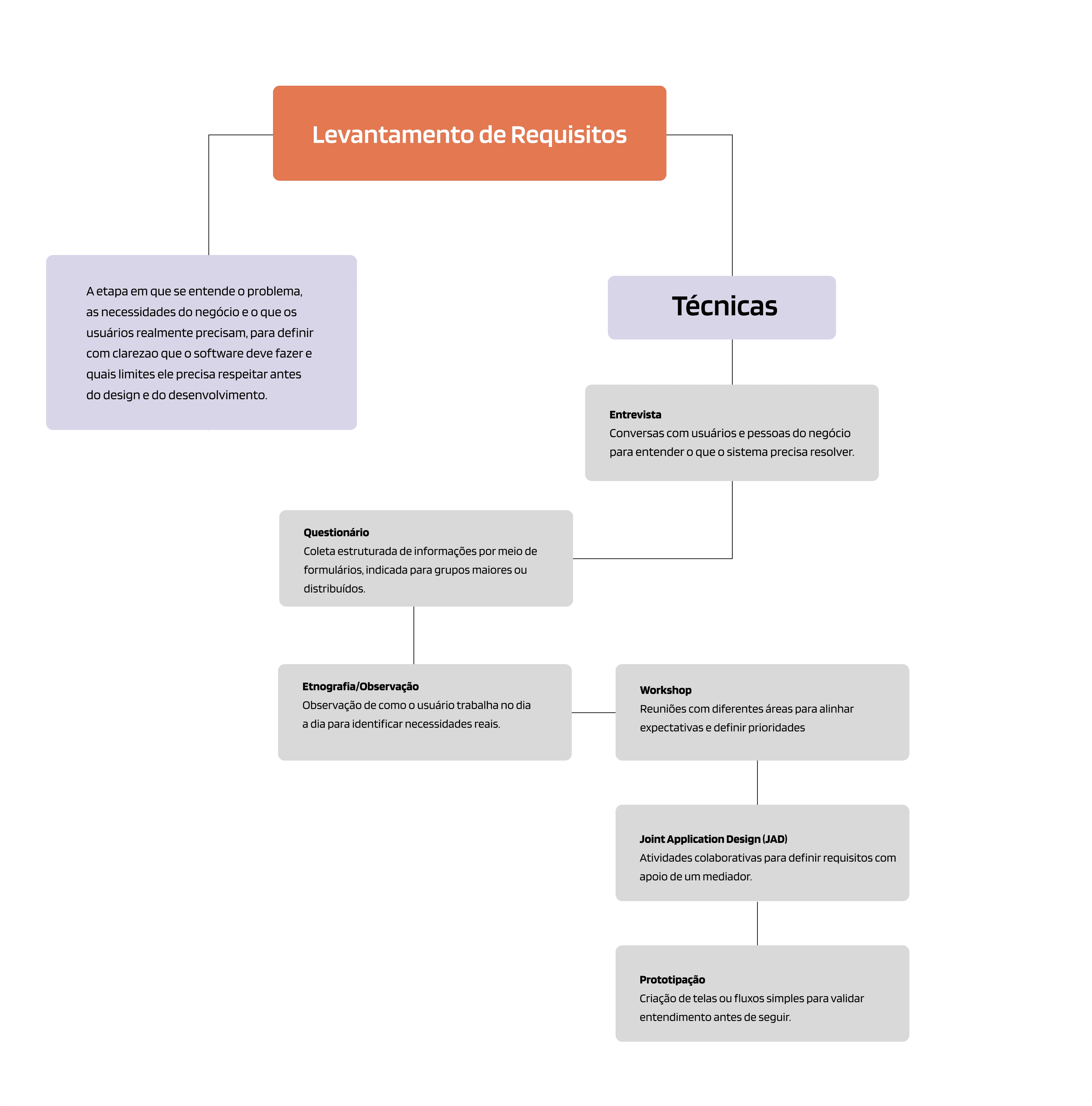 O levantamento de requisitos de software é a etapa em que são identificadas as necessidades, expectativas e restrições dos stakeholders envolvidos no projeto. O objetivo não é apenas coletar informações, mas compreender o contexto em que o produto digital será utilizado e quais problemas ele precisa resolver.