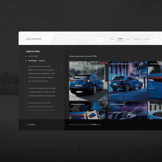 A Lexus Portugal, sediada no Porto, precisava lançar seu primeiro veículo 100% elétrico sem interferir na comunicação de seus veículos híbridos já consolidados no mercado. A UEEK teve o desafio de criar um site que transmitisse os objetivos da marca de forma clara e impactante, sem gerar ruído entre as diferentes linhas de produto.