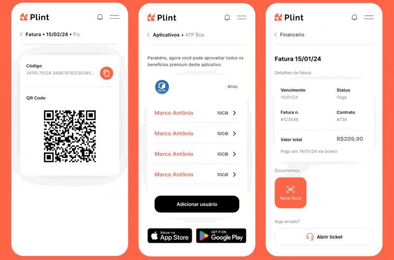 A Plint foi criada para atender à demanda por uma solução white label adaptável à identidade visual dos provedores de internet que a utilizam. A plataforma precisava de uma interface de fácil navegação, com funcionalidades que permitissem configurações internas, controle de dados e gestão financeira, tudo de forma simples e intuitiva. Ao mesmo tempo, era essencial manter uma estética minimalista e organizada, que não interferisse na personalização pelos clientes.